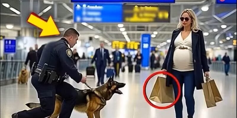 The dog was barking frantically at a pregnant woman at the airport