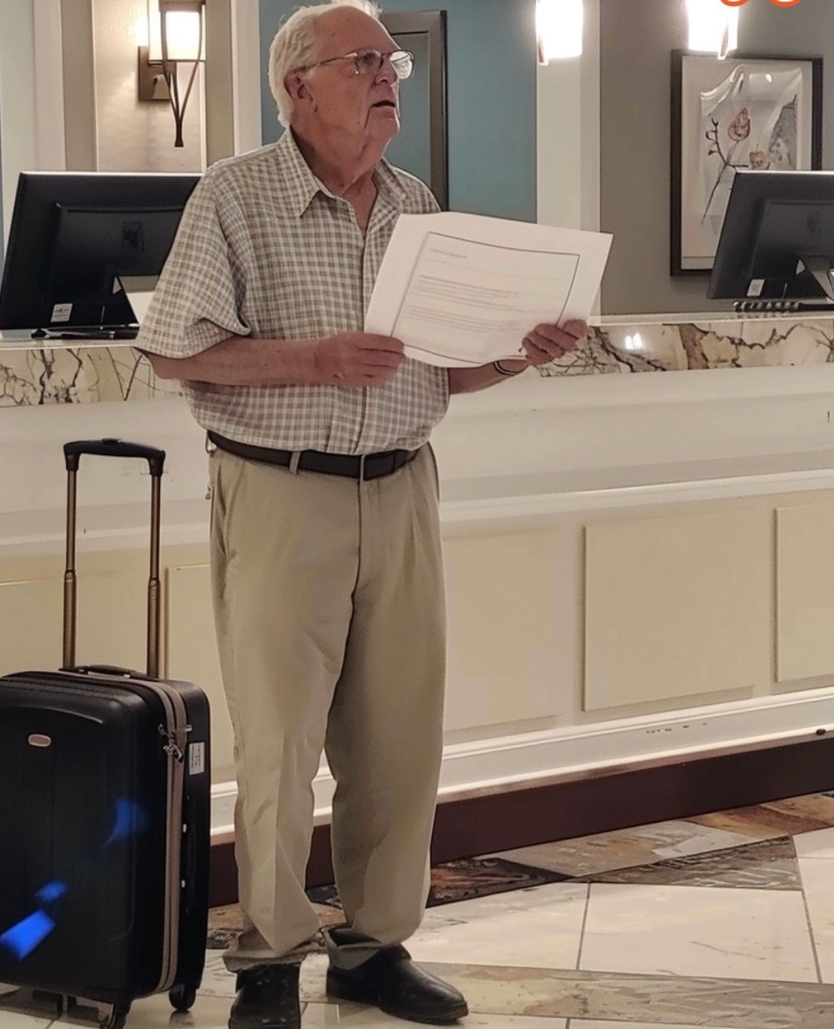 Back inside, Grandpa was still apologizing—to the front desk.